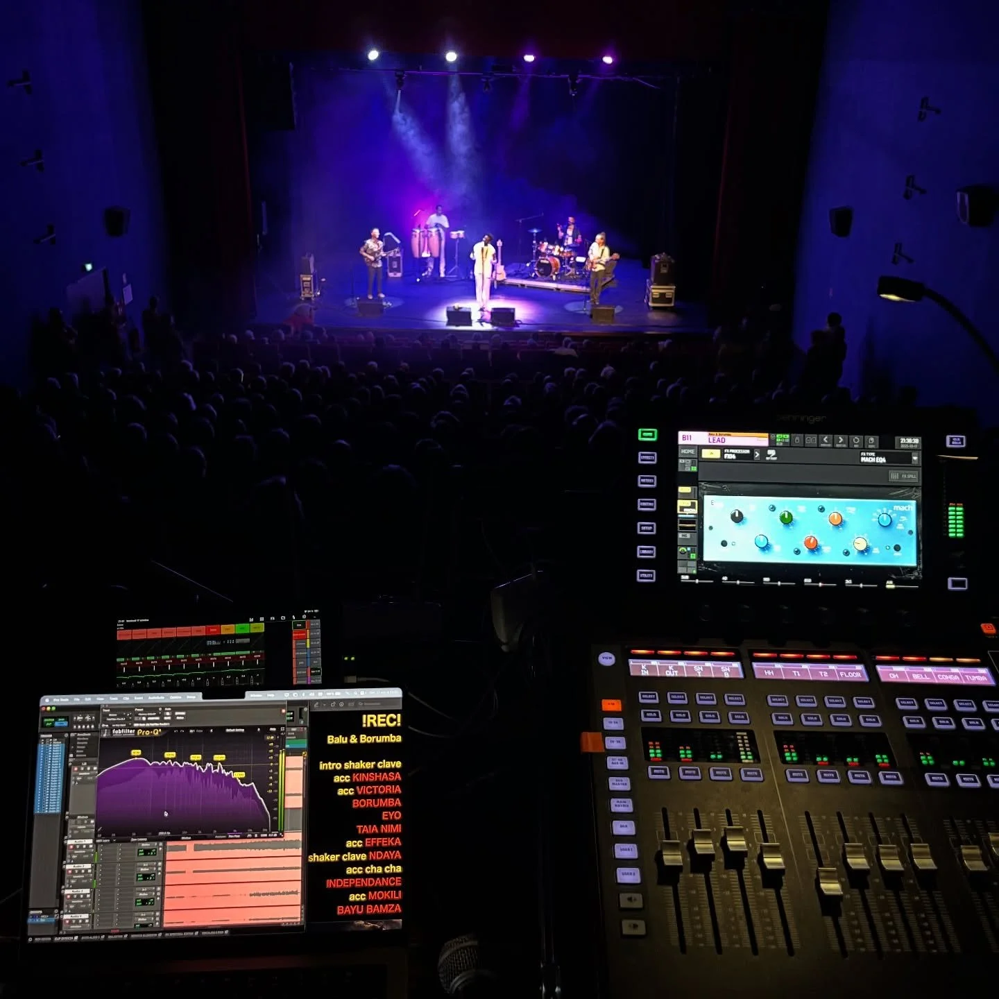 Je possède une console ainsi qu’un bonne quantité de microphones et autres accessoires. Ce qui me permet d’être indépendant et d’optimiser le travail en tournée.