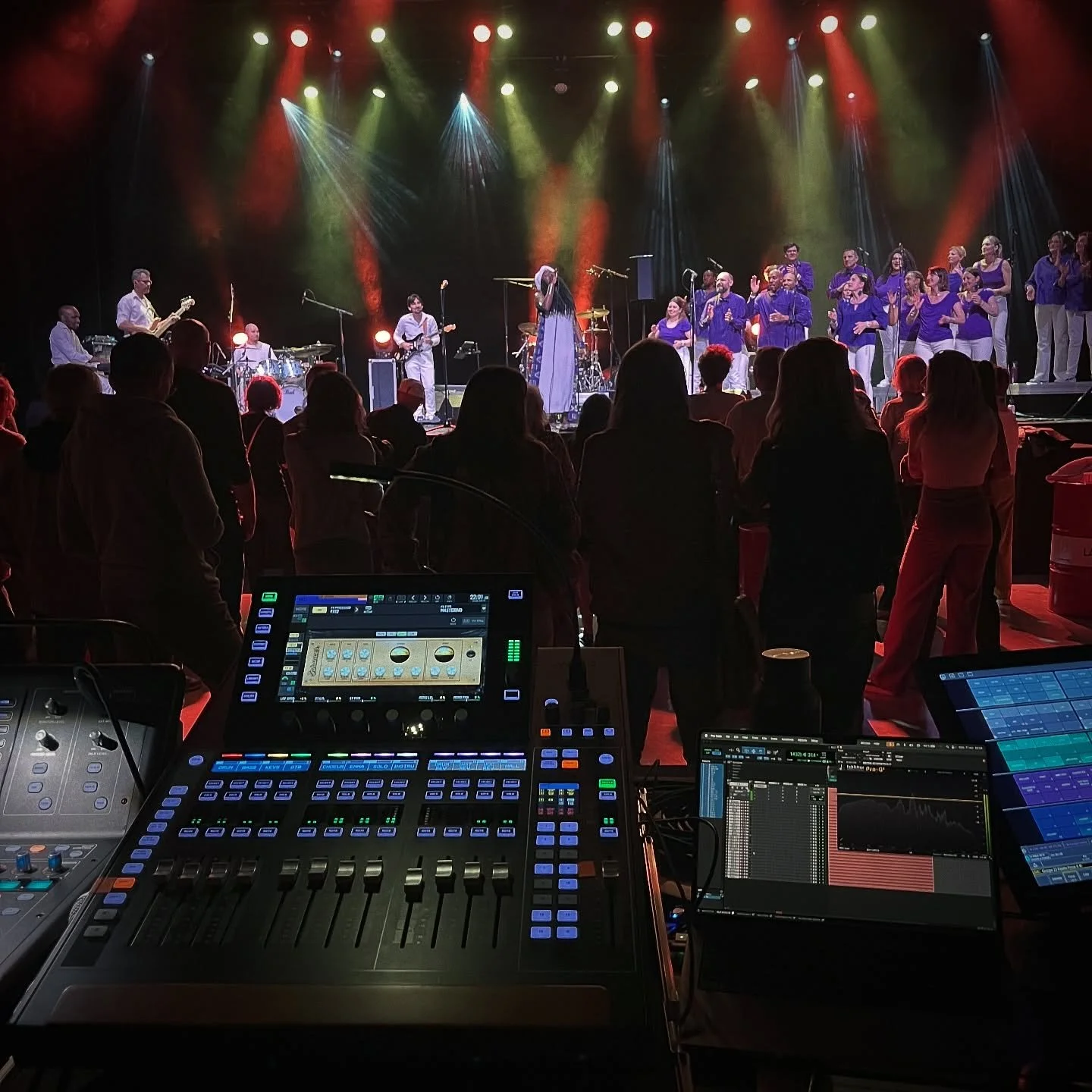 Je possède une console ainsi qu’un bonne quantité de microphones et autres accessoires ( LiveProfessor, contrôleurs ). Ce qui me permet d’être indépendant et d’optimiser le travail en tournée.